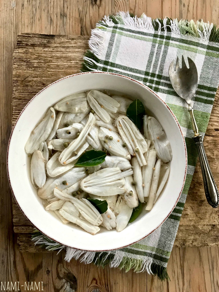 300g puljongit/100g õunaäädikat/100g valget kuiva veini. (Õunaäädikat asendab ka veiniäädikas või sidrunimahl, mis on jälle kangem! Eks ikka maitse järgi, sest hapu peab ta olema!)
