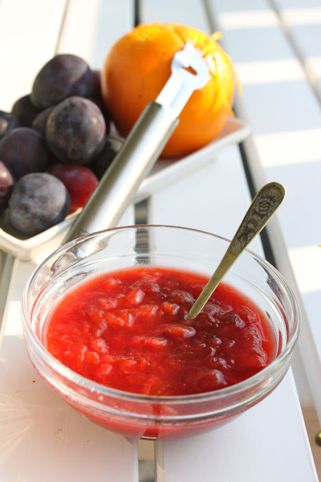 Paks vanilli, ingveri ja apelsinikoorega maitsestatud ploomimoos. Serveeri näiteks röstisaiaga.