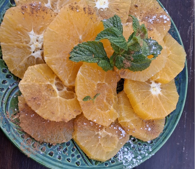 Ehk kaneeli ja suhkruga "marineeritud" apelsiniviilud.