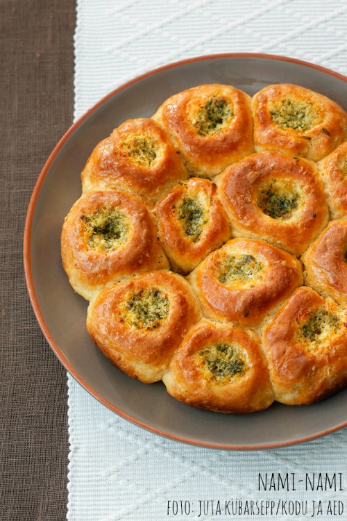 väga maitsavad! kasutasin 25 g värsket pärmi kuna kuiva polnud. lisasin küüslauguvõile ka veidi soola.