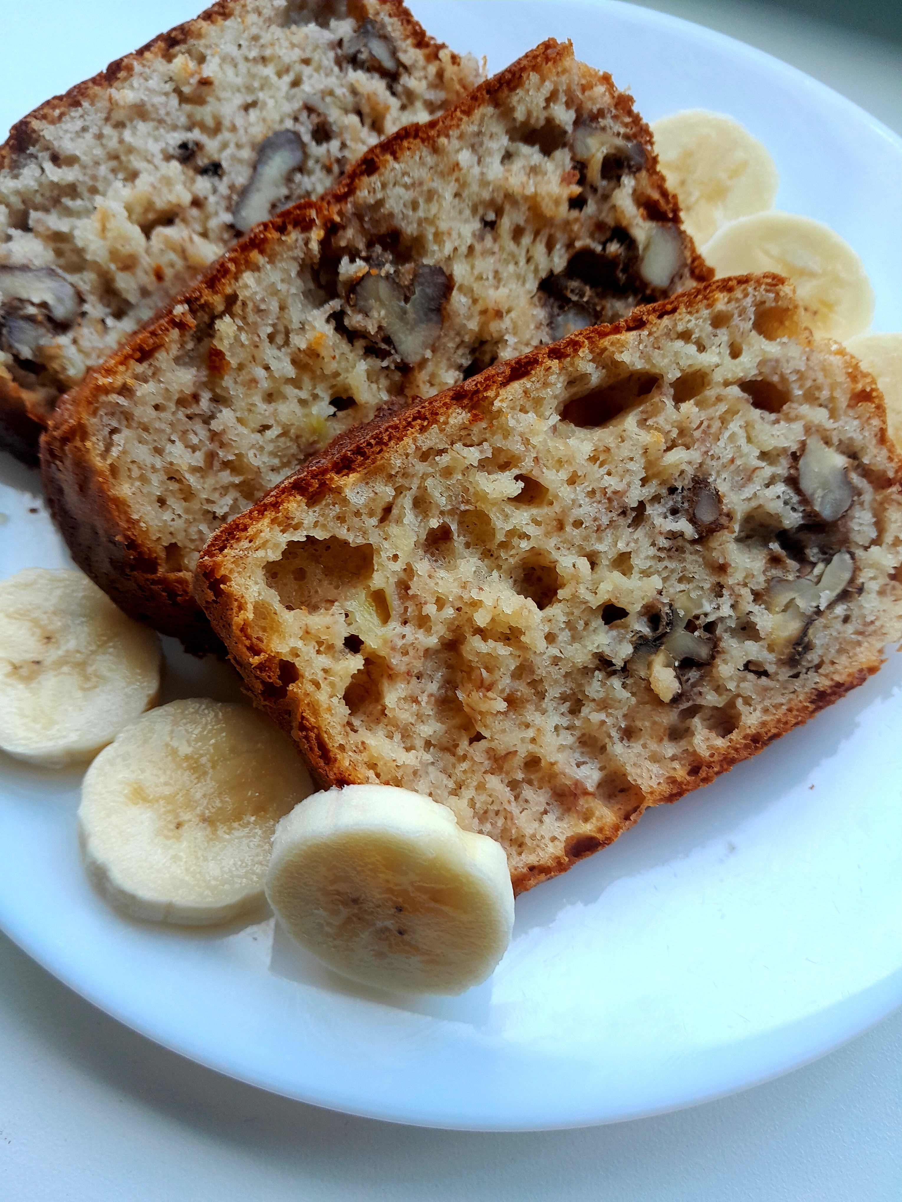 Väga mõnus ja mahlane. Pole küll selline murenev nagu tavaline keeks, aga maitse väga hea :) Kasutusse läksid pruunid banaanid, mida keegi süüa poleks tahtnud.Nüüd oligi hea võimalus need ära kasutada.