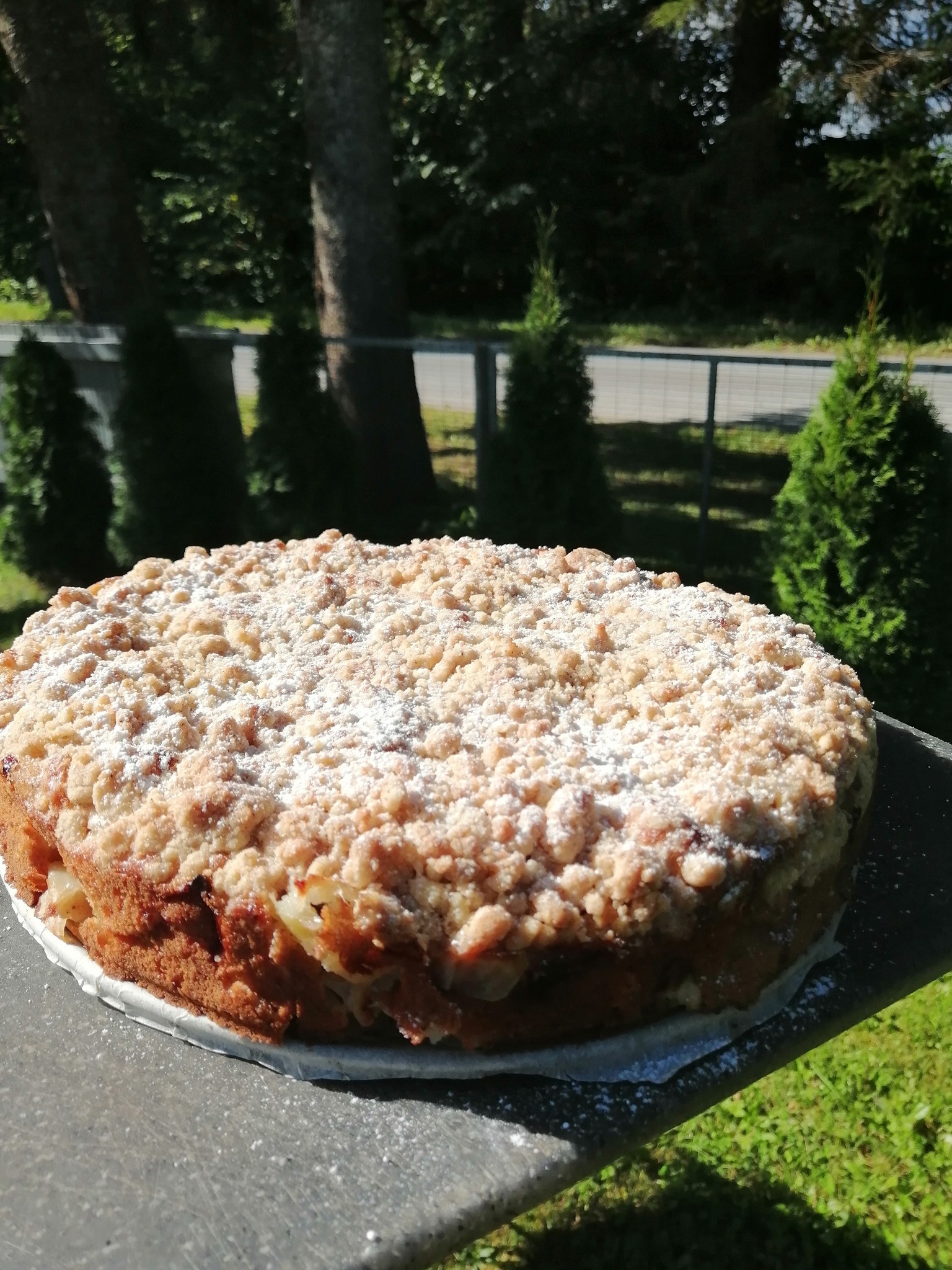 Seda purukatet võib koogile väga erinevalt panna, või üldse ära jätta. See õunakook oli nii vastupandamatu, et ma nägin suurt vaeva enda tagasi hoidmisega. Läheb kindlasti minu lemmik-retseptide hulka.