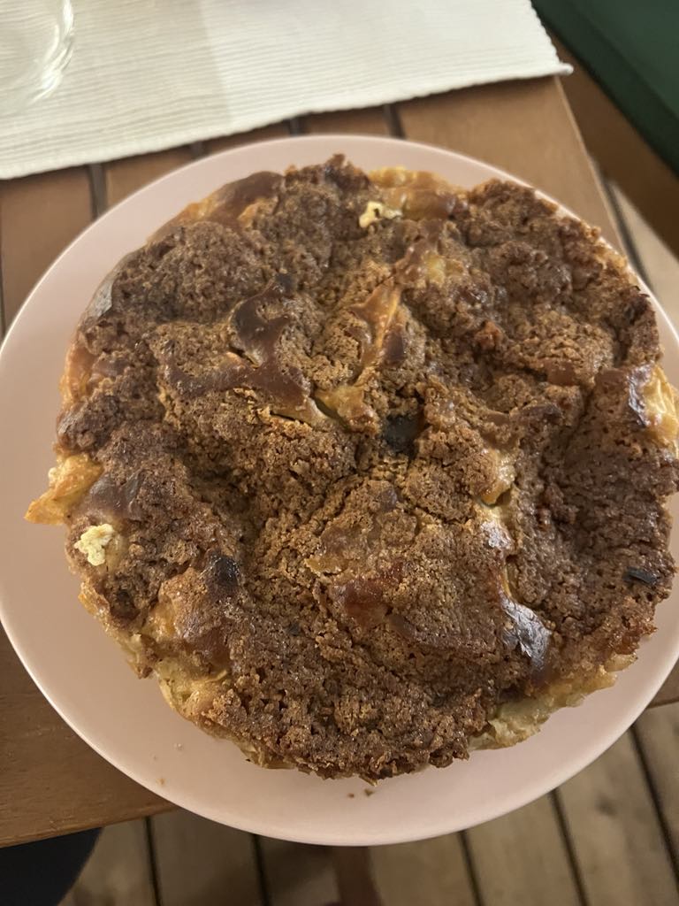 Mõnus mahlane kook, kuid ärge mingil juhul soola pange! Mul tuli kook seetõttu veidi soolane, kuid seda võib vist meresoola süüks panna. Serveerisin vanillijäätisega. Katteks soovitan rohkem võid panna, sest jääb mõningaid jahuseid kohti. Kellele kaneel meeldib, on see väga väga mõnus kook!