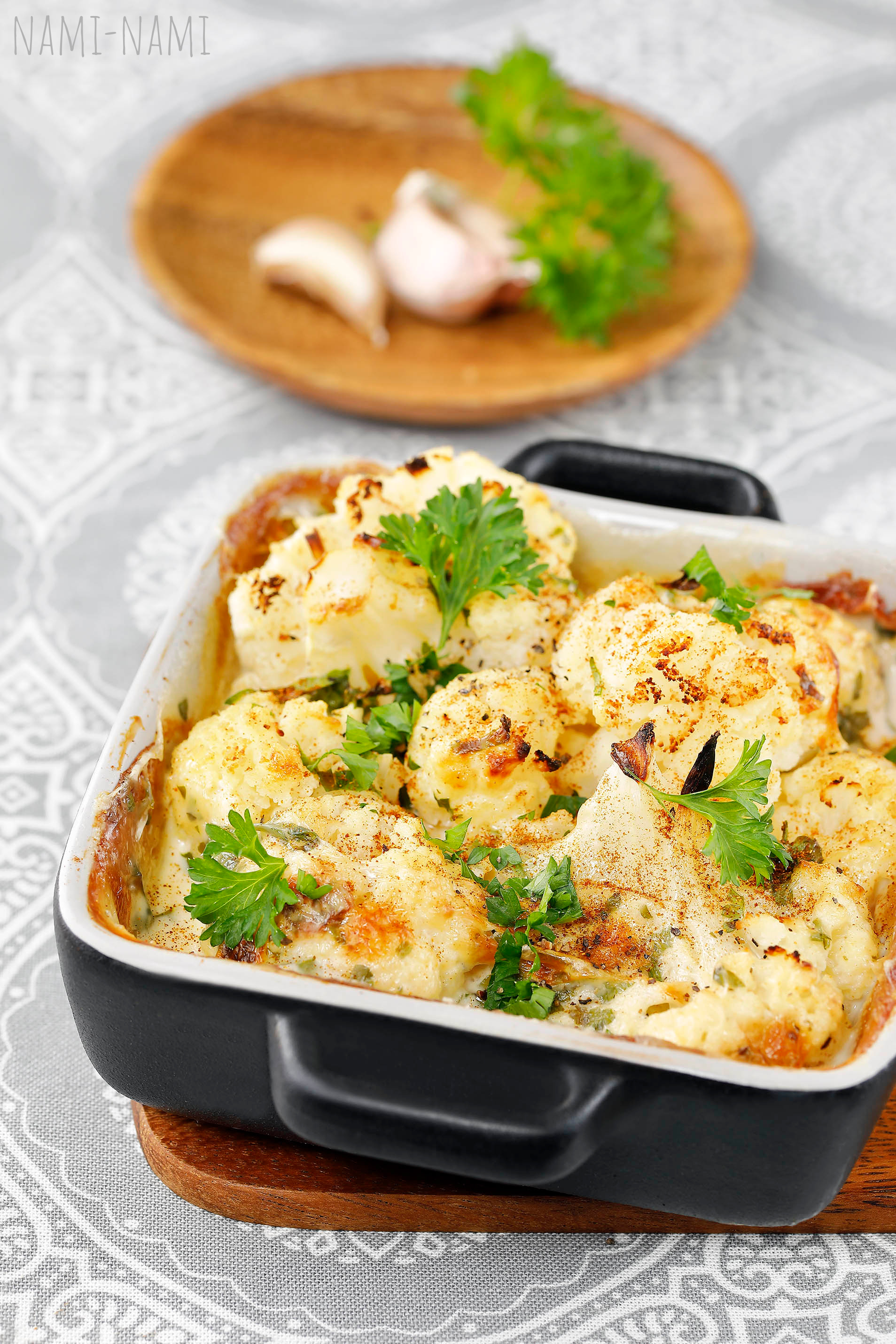 Sinihallitusjuustu ja sinepiga maitsestatud ahjus gratineeritud lillkapsas. Sobib hästi vegetaarseks põhiroaks.