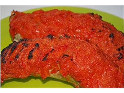 Püreesta köögikombainis paprika, tšilli ja punane sibul. Sega juurde sool, pipar ja parmesan.