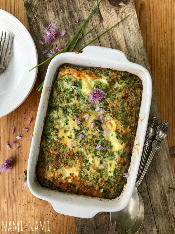 Küpseta 200kraadises ahjus umbes 30 minutit, kuni pind on kaunilt kuldne ja munamass hüübinud. Kui munamass veel hüübinud pole, aga roog pealt juba liialt tumedaks tõmbub, kata pealt fooliumiga.