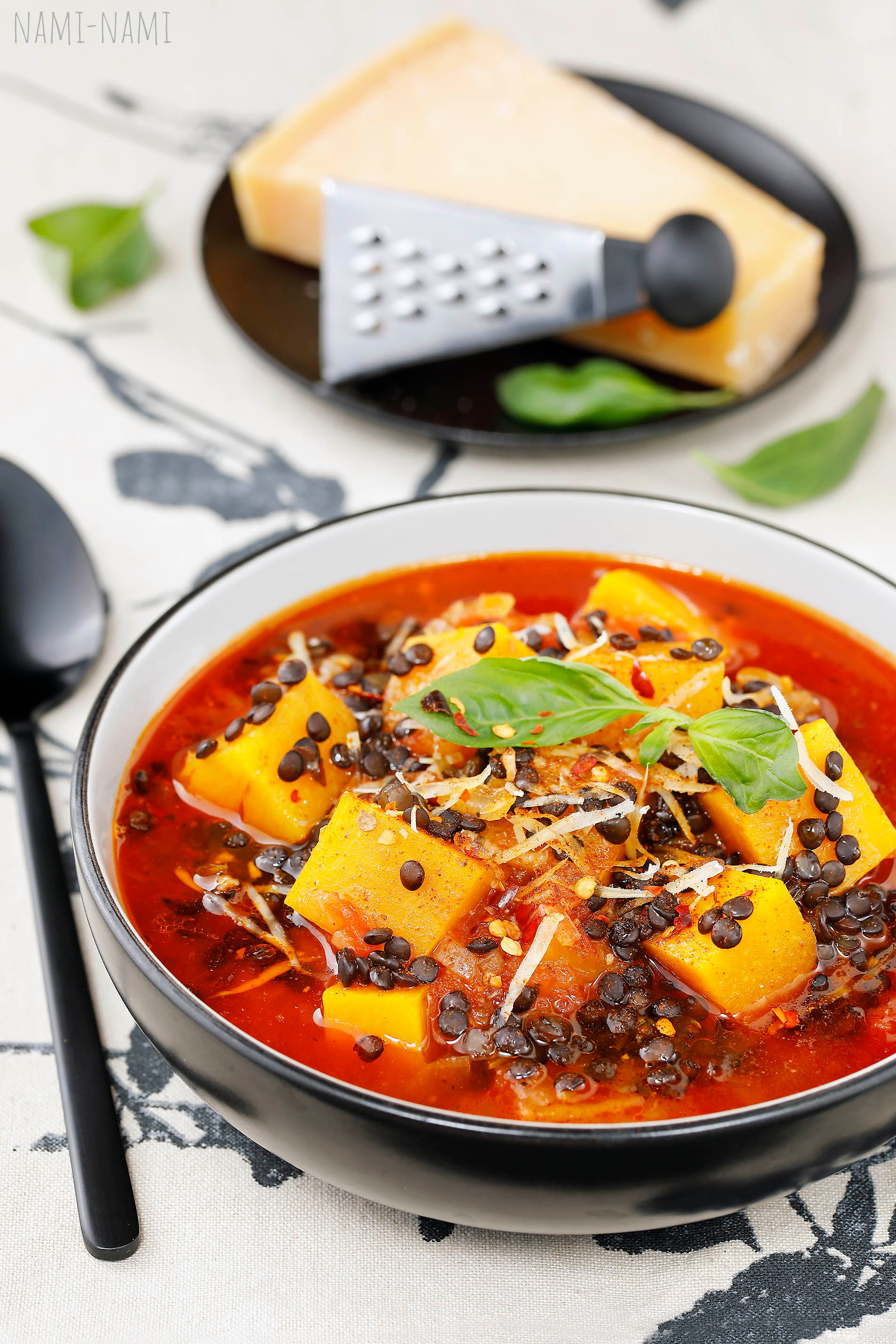 Kuumuta supp uuesti tasakesi keemiseni, siis maitsesta uuesti. Serveerimisel puista peale basiilikut ja parmesani ning nirista peale oliiviõli.