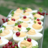 Kaunistuseks:Lõika kooritud munad pooleks, võta kollased välja.