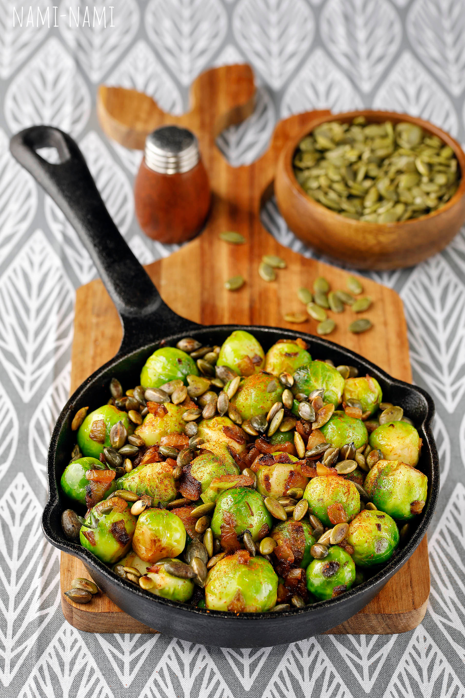 Eemalda pannilt kaas, maitsesta. Tõsta veidi kuumust ja prae veel paar minutit, kuni rooskapsad on kergelt pruunistunud.