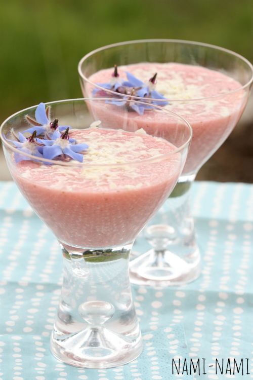 Suvine roosamanna, kus lisaks maasikatele on lisatud ka riivitud valget šokolaadi.