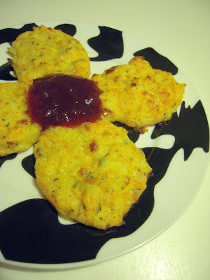 Porgandi-kodujuustukotletid on maitsvad kuumalt koos kartulipudru ja pohlamoosiga.