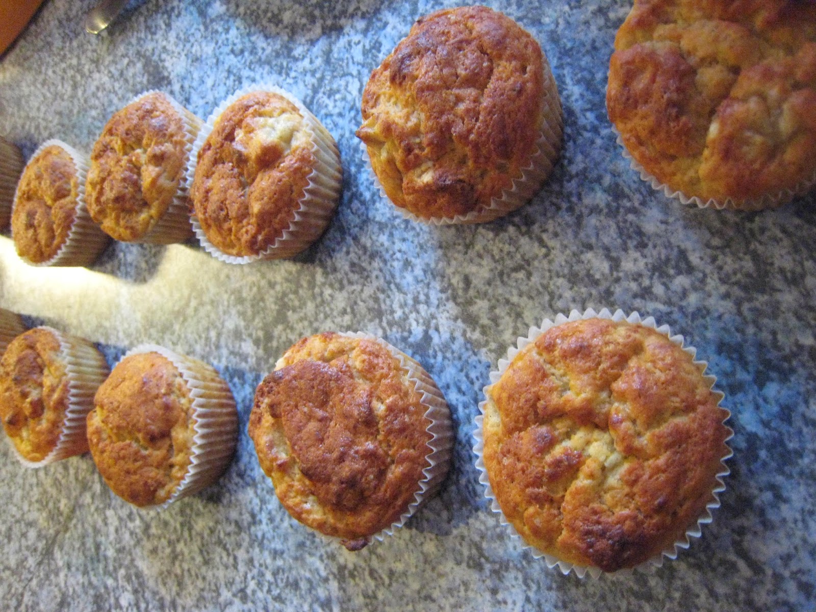 Mõnusad muffinid. Kuna kodus ei leidunud ühtegi pähklit meenutavat toiduainet, siis purustasin käte vahel mandlilaaste. Hää kraam sai, maitses kogu perele ja külla tulnud ämm oli lausa ahvivaimustuses. :)
