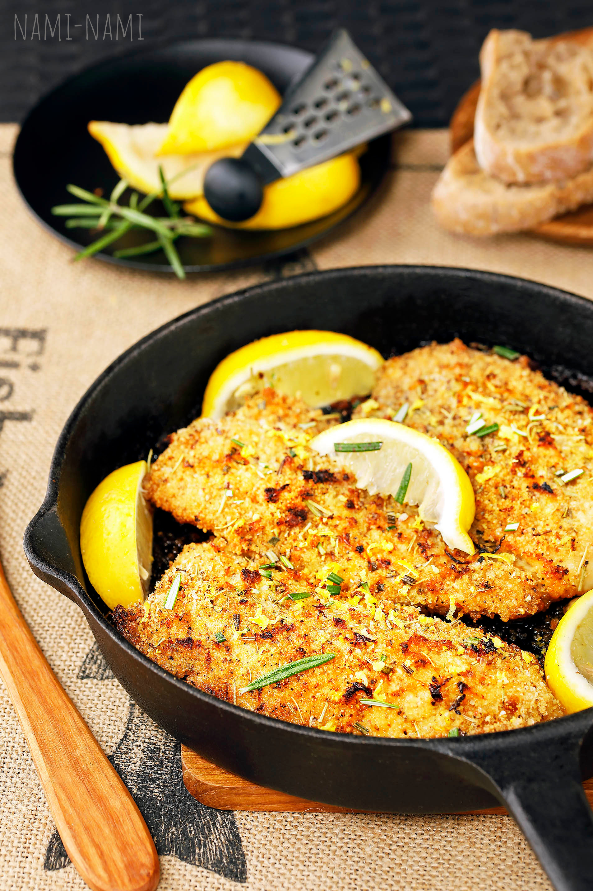Valge kala krõbeda sidruni-rosmariinikatte all. Kasuta nt hõbeheiki.